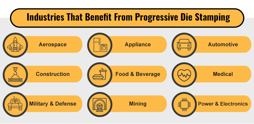 The following industries benefit from progressive die stamping services: